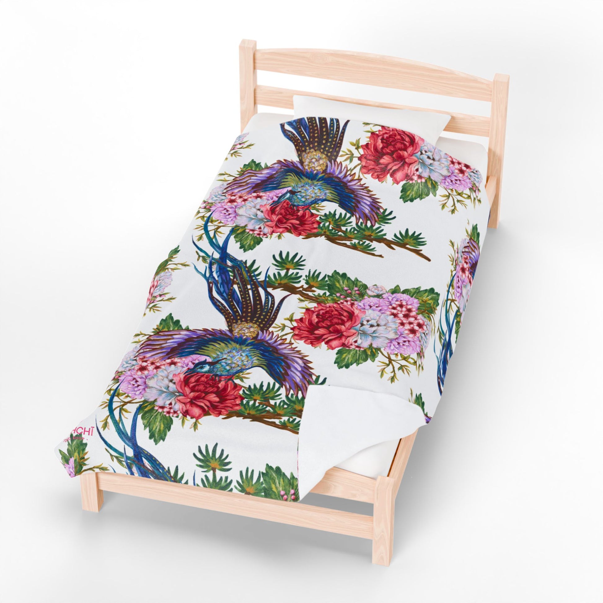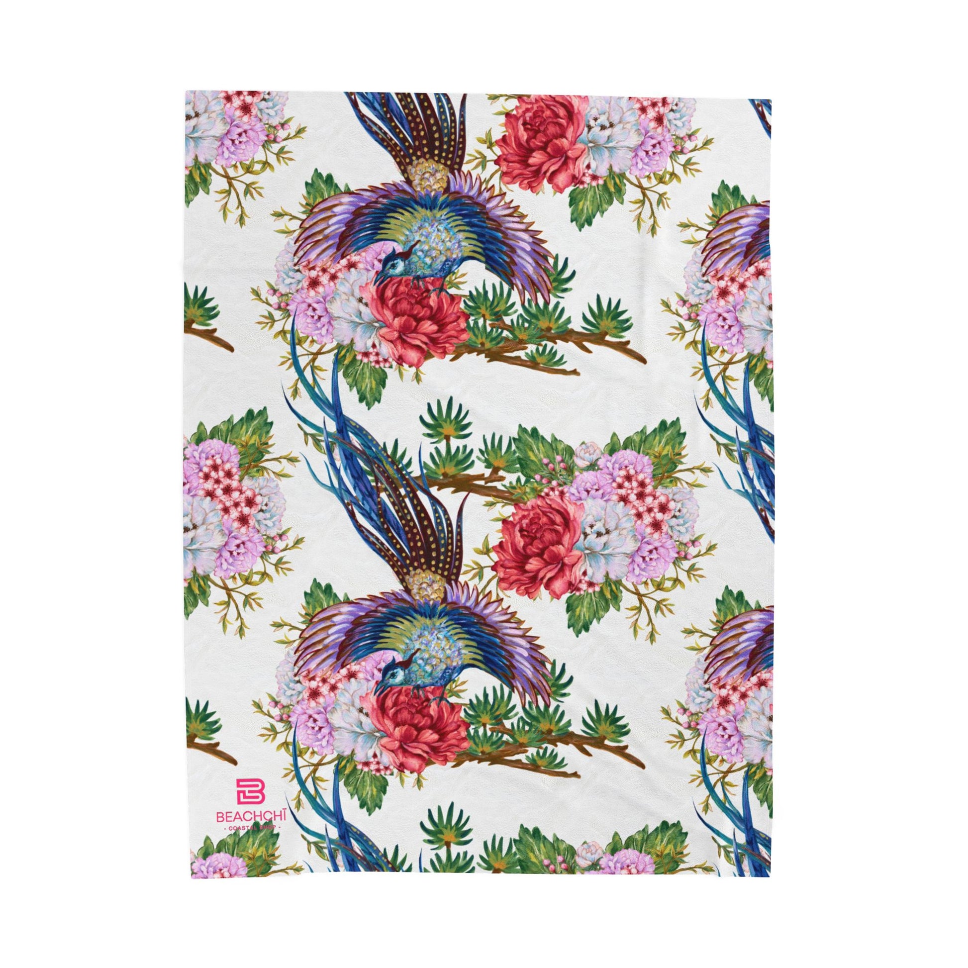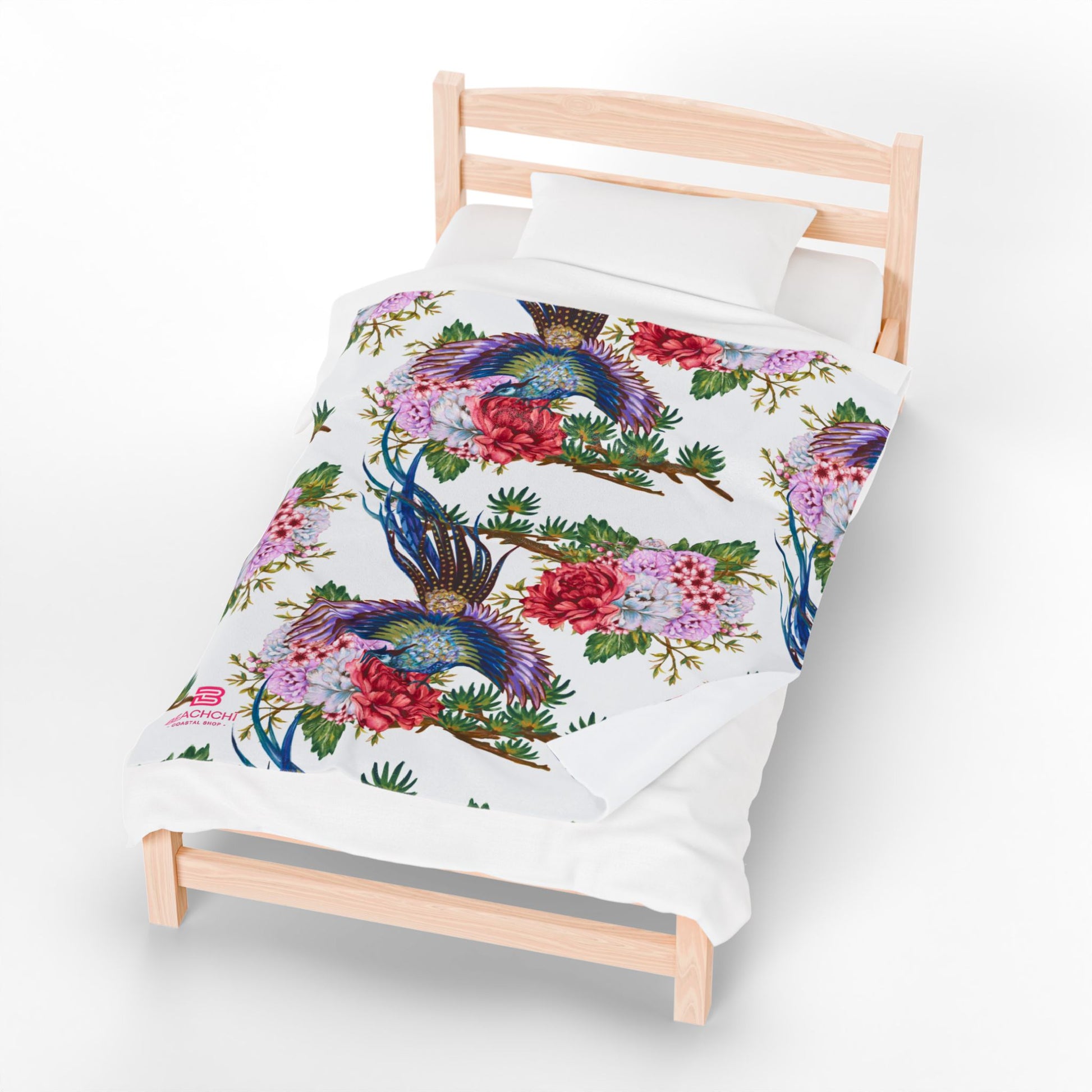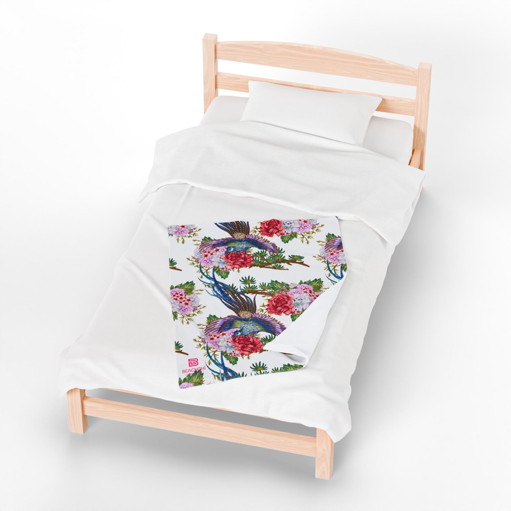 Floral Velveteen Blanket, 3 Sizes, Bedding, Cozy Throw Blanket, Home Décor, Soft Plush Blanket, Coastal Décor, Warm Coverup, Beachchi Blanket